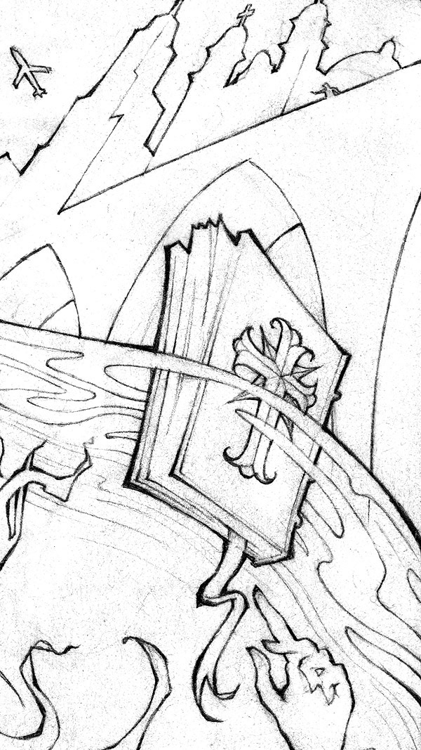 A personal illustration project, based on a narrative on secret books, a key, a knife and the Hudson river.