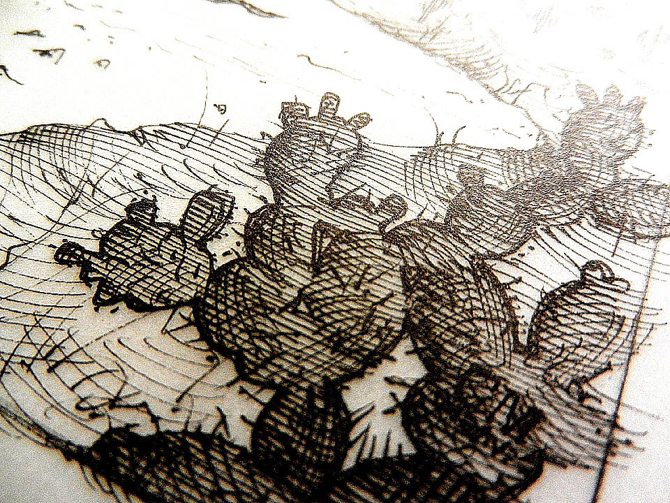 Illustrations for the book «Satán Salvador», a short evangelical novel by Cristóbal Henestrosa, Mexican author, type and graphic designer. Inspired the engravings of Baldung, Merian, Cranach and Dürer, these illustrations were executed in the guise of Renaissance-era religious books. Type is also original, featuring Henestrosa’s Espinosa gothic type and my Darka, an original typeface design inspired in Bâtarde, Textura and Fraktur styles of calligraphy. Here I show the published illustrations, several previous thumbnail sketches and images of the final artwork accompanying the text.